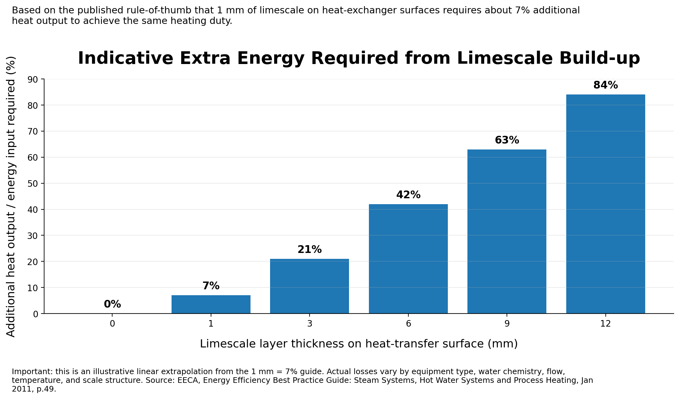 How much more does it cost to heat water through limescale?